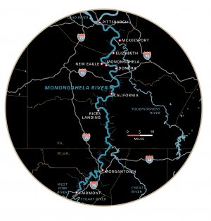 The river’s name comes from the Indian word Mënaonkihëla — “where banks cave in or erode.” And in the past 260 years, those banks have helped forge American history. In 1755, young George Washington narrowly escaped death when British General Edward Braddock’s troops were massacred at present-day Braddock during an early skirmish in the French and Indian War. In 1892, a seminal and lethal labor battle, the Homestead Steel Strike, erupted with cannon and gunfire between barges and the banks. And in 1959, when Soviet Premier Nikita Krushchev came to the U.S., he wanted to see three things: Hollywood, an Iowa farm, and a Monongahela River steel plant.